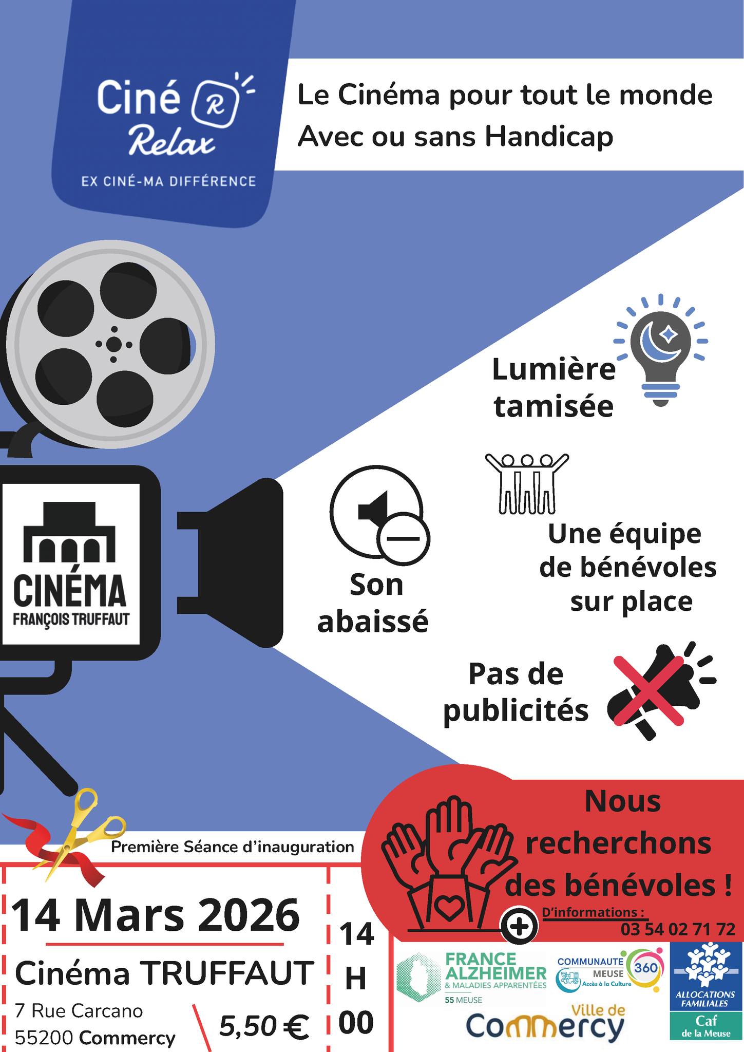 À partir du ¿¿ 14 mars 2026 à 14h00, le dispositif Ciné Relax arrive au Cinéma Truffaut de Commercy, à l’initiative de :